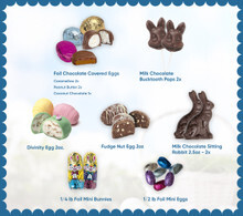 - 1/4 lb x Foil Mini Bunnies – Little foil-wrapped bunnies bursting with sweet milk chocolate, adding a festive touch to every moment.